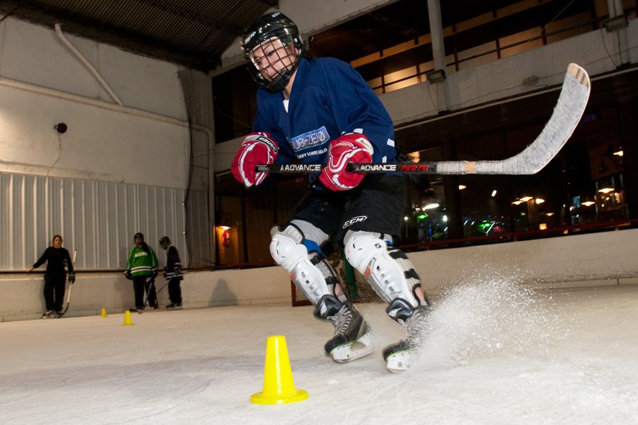 Son las nueve de la noche, es miércoles y la escuela de hockey sobre hielo para chicas está a punto de empezar. Antes de ingresar en la pista –Alpina, ubicada en el barrio porteño de Flores– ellas requieren de unos minutos para transformarse. El proceso no es sencillo ya que deben ocultarse bajo un sinfín de protectores. Las jugadoras llegan al hielo con el volumen de su cuerpo multiplicado: los pads, el casco y los guantes las protegen allí donde el acolchado de la indumentaria no puede. Todo el cuerpo está cubierto; el contacto es intenso y necesario.
